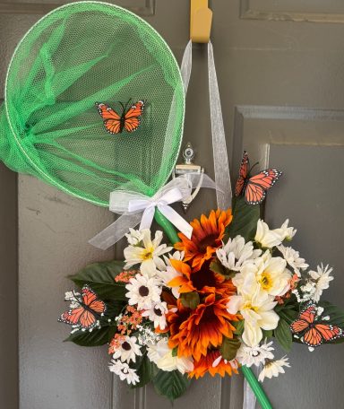 Door decorations are a visible extension of ourselves, a wreath or door decor can be crafted as a showcase for your individuality, favorite colors, flowers, cherished items, or memorabilia. Our originality is no longer confined to the inside of our homes and neither is yours! Please continue to review the many wreaths and door decors I have made to get ideas for your own distinctive style.. Contact me with your ideas and preferences so I can make a unique personal wreath or door decor for y0u!